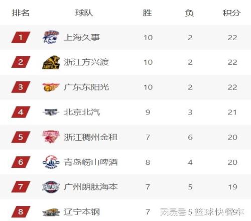 北京队作为本赛季第一争冠热门球队,球队阵容实力非常豪华。不过,在上一轮比赛,他们却在主场爆冷遭到山东队绝杀,吞下本赛季第3败。截止到目前,北京队的战绩是9胜3负,排在积分榜第四名。排在积分榜第5名的是浙江队。这一轮比赛,浙江队以20分的优势狂胜北控队,战绩提升到7胜6负,重返强队行列。要知道,在赛季初,浙江队一度跌出前12名,甚至一度排到15名开外。