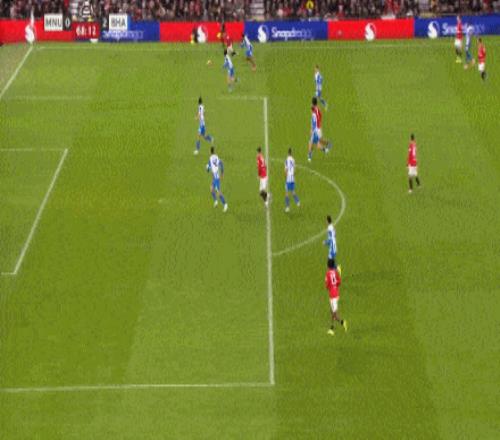 第64分钟,维尔贝克弧顶位置接球,左脚爆射上角破门弑旧主,布莱顿2-0领先曼联。