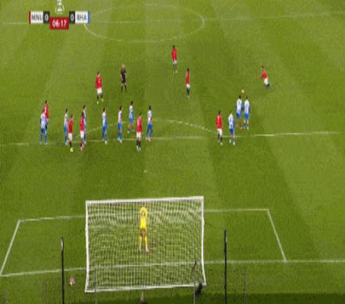 第41分钟,曼联前场任意球机会,B费一记贴地斩稍稍偏出立柱。